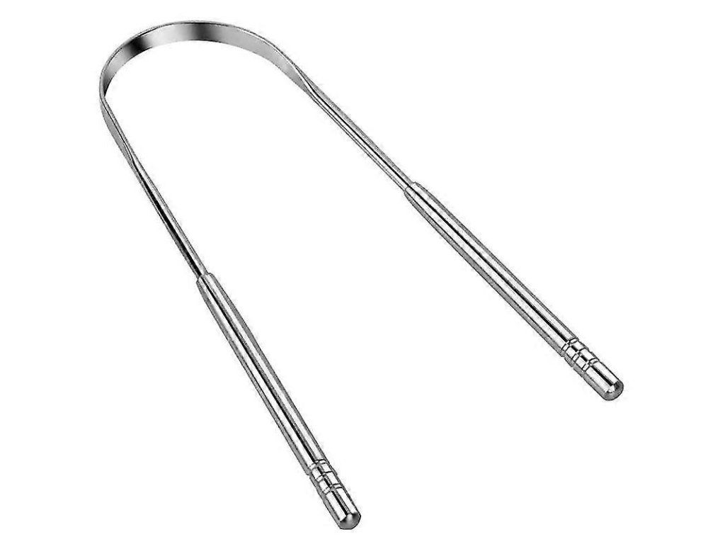 Nerezová škrabka na jazyk má jedinečný tvar, který ulehčuje uživateli dosáhnout vzdálené oblasti na jazyku a efektivně stáhnout z jeho povrchu nežádoucí povlak.